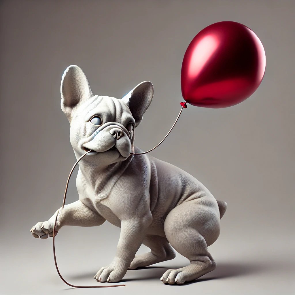 "'Luna' Sculpture – French Bulldog with a Red Balloon"