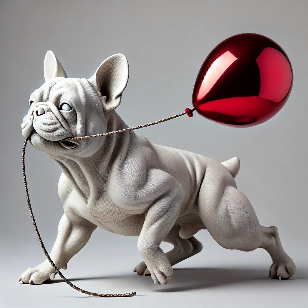"'Rex' Sculpture – French Bulldog with a Red Balloon"